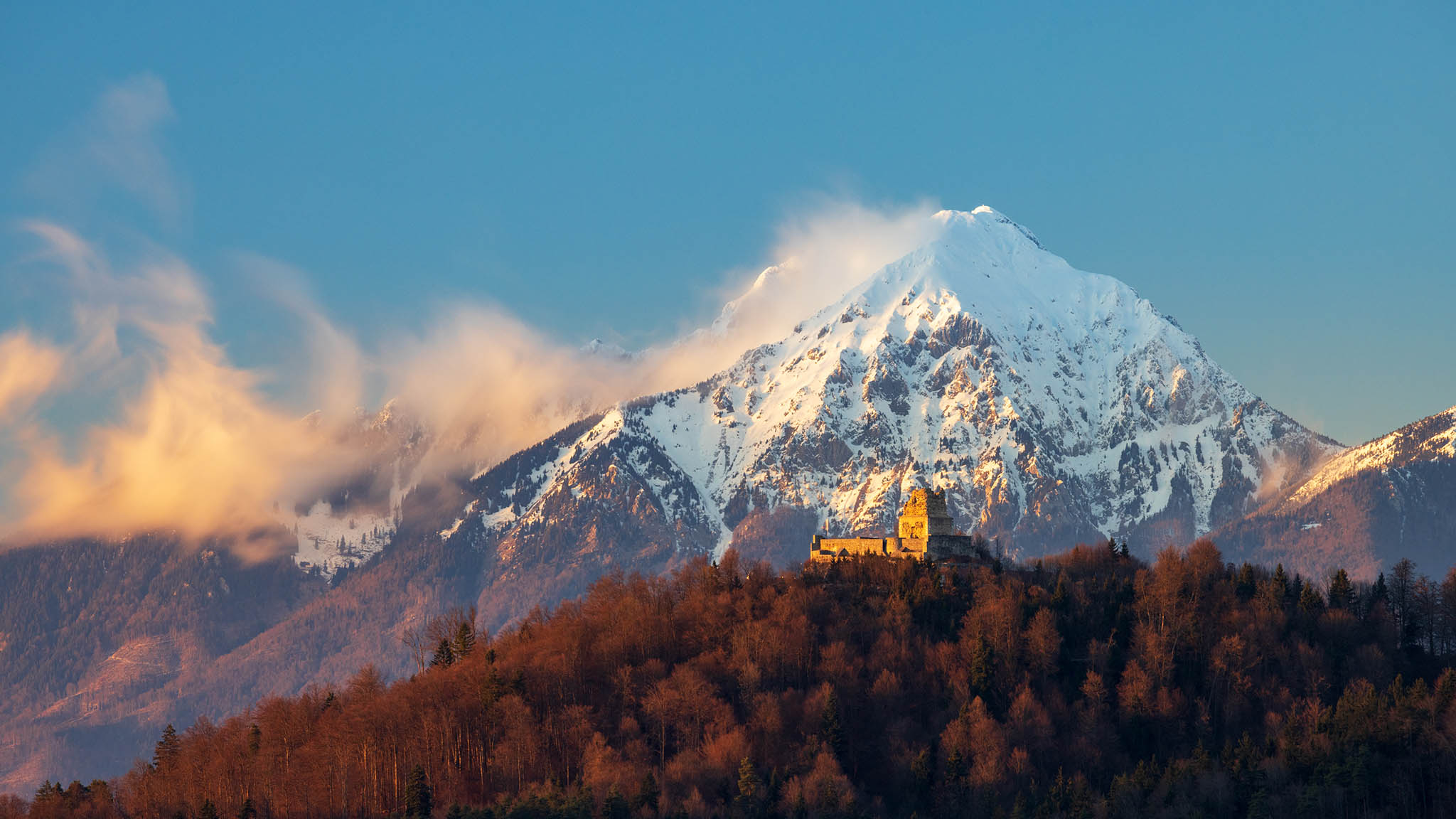 In this gallery you can view a collection of my best photos of mountains from Slovenia. The beauty of this country is that it is small, but contains several mountain chains that are not only easily accessible but also easy to photograph from a variety of locations. There is even one location where you can see three sets of mountains. In this gallery you will see pictures from the Julian Alps, Kamnik Alps and Karavanke Alps plus the little known western mountain of Snežnik.
