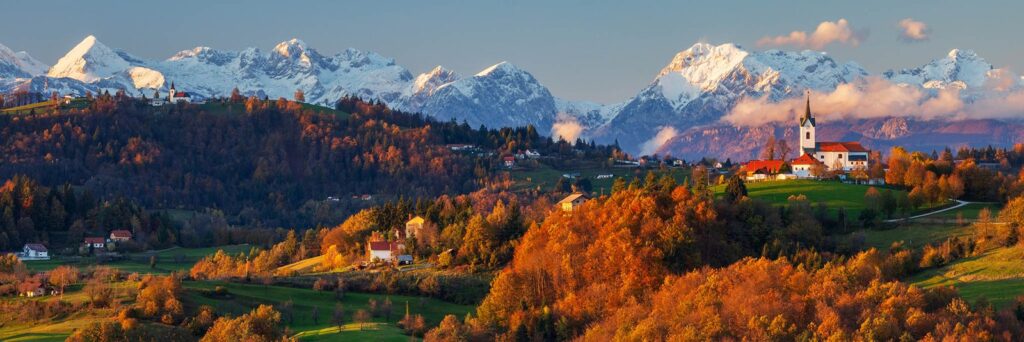 Fine art print of the church of Saint Margaret in Prezganje and the church of Saint Nicholas